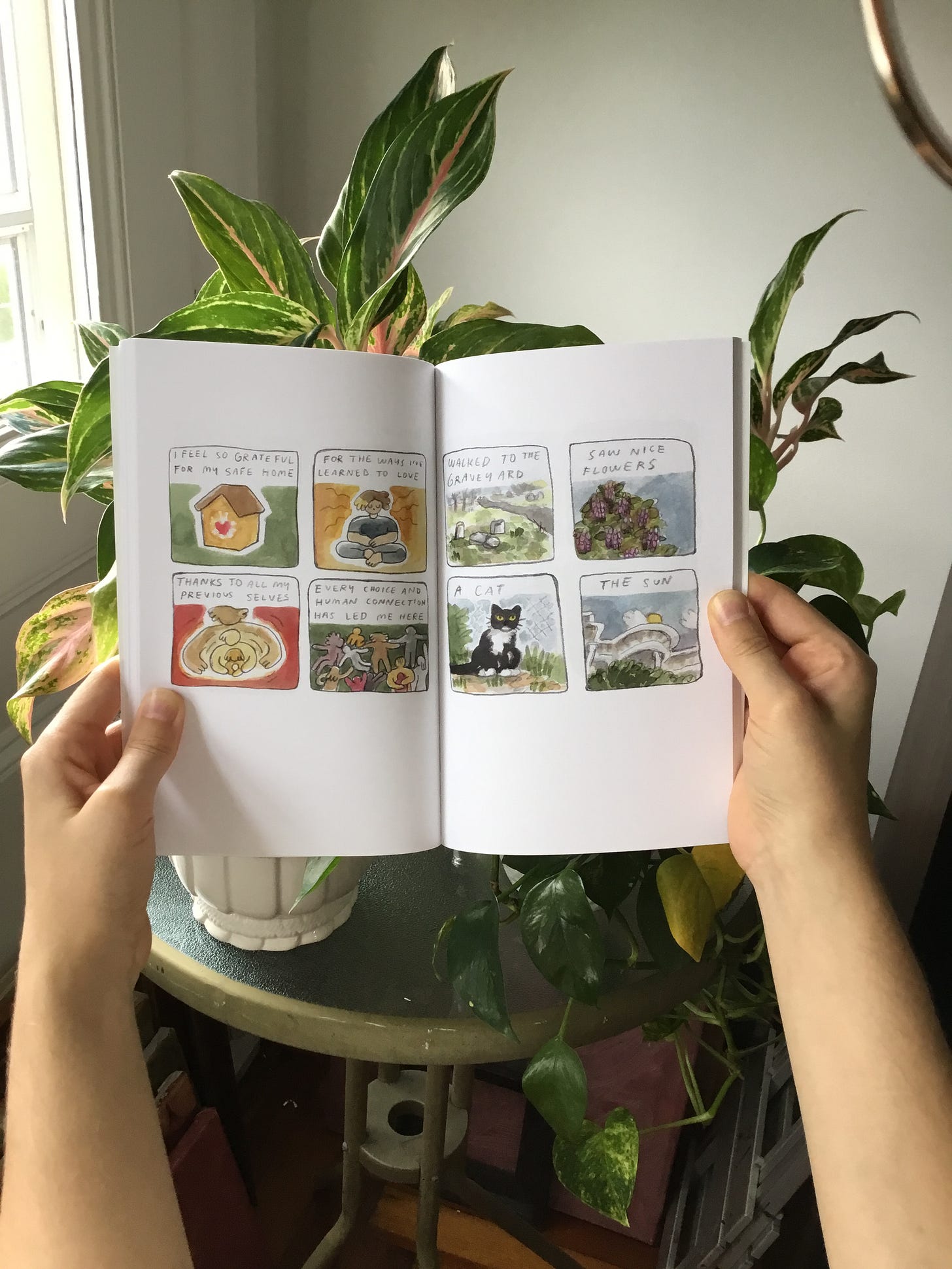 The book is over 90 pages of watercolor diary comics, compiled with care, and printed in full color.